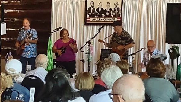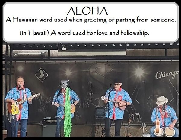 Aloha is a beautiful Hawaiian word that can have many meanings. It can mean love, affection, compassion, kindness or grace. It can be used as a greeting, or it can be said when you are leaving. The Ukulele Moonshiners embrace the "Spirit of Aloha" and bring it to every performance.