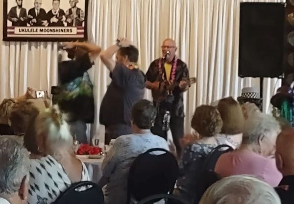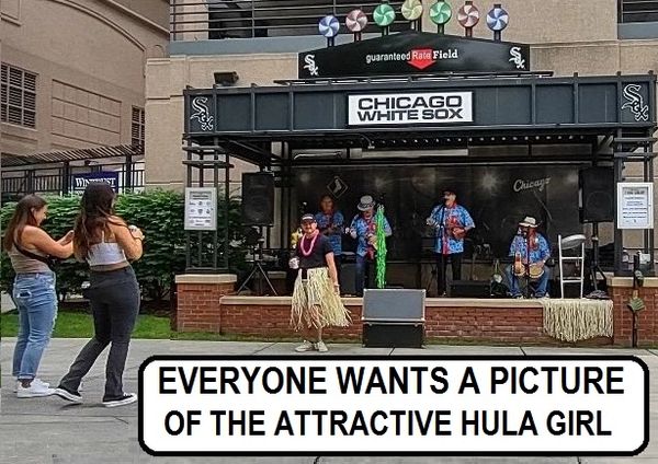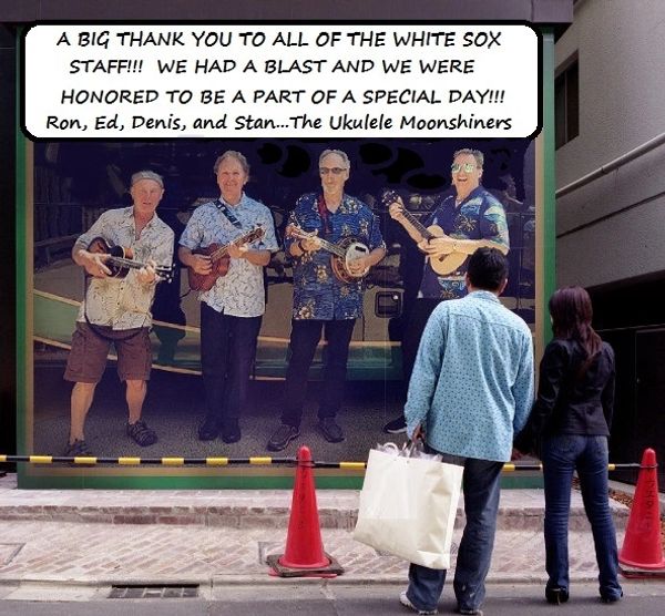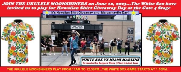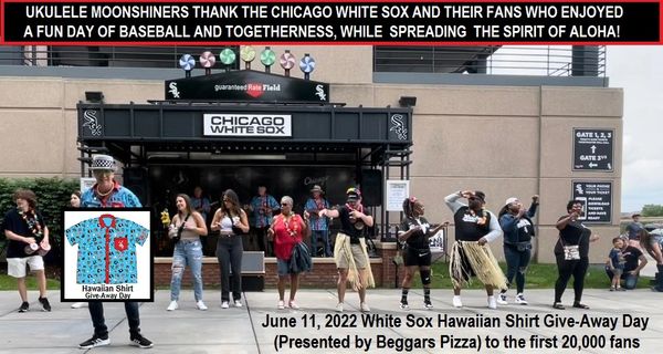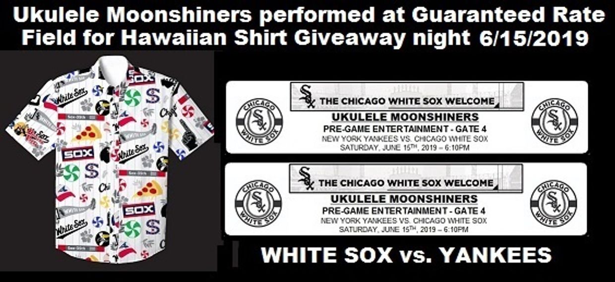 On June 15, 2019 the Ukulele Moonshiners performed at Guaranteed Rate Field for Hawaiian Shirt Giveaway night. Unfortunately the White Sox lost to the Yankees - but a handsome man resembling former World Series winning manager Ozzie Guillen was seen dancing to Tiny Bubbles.
